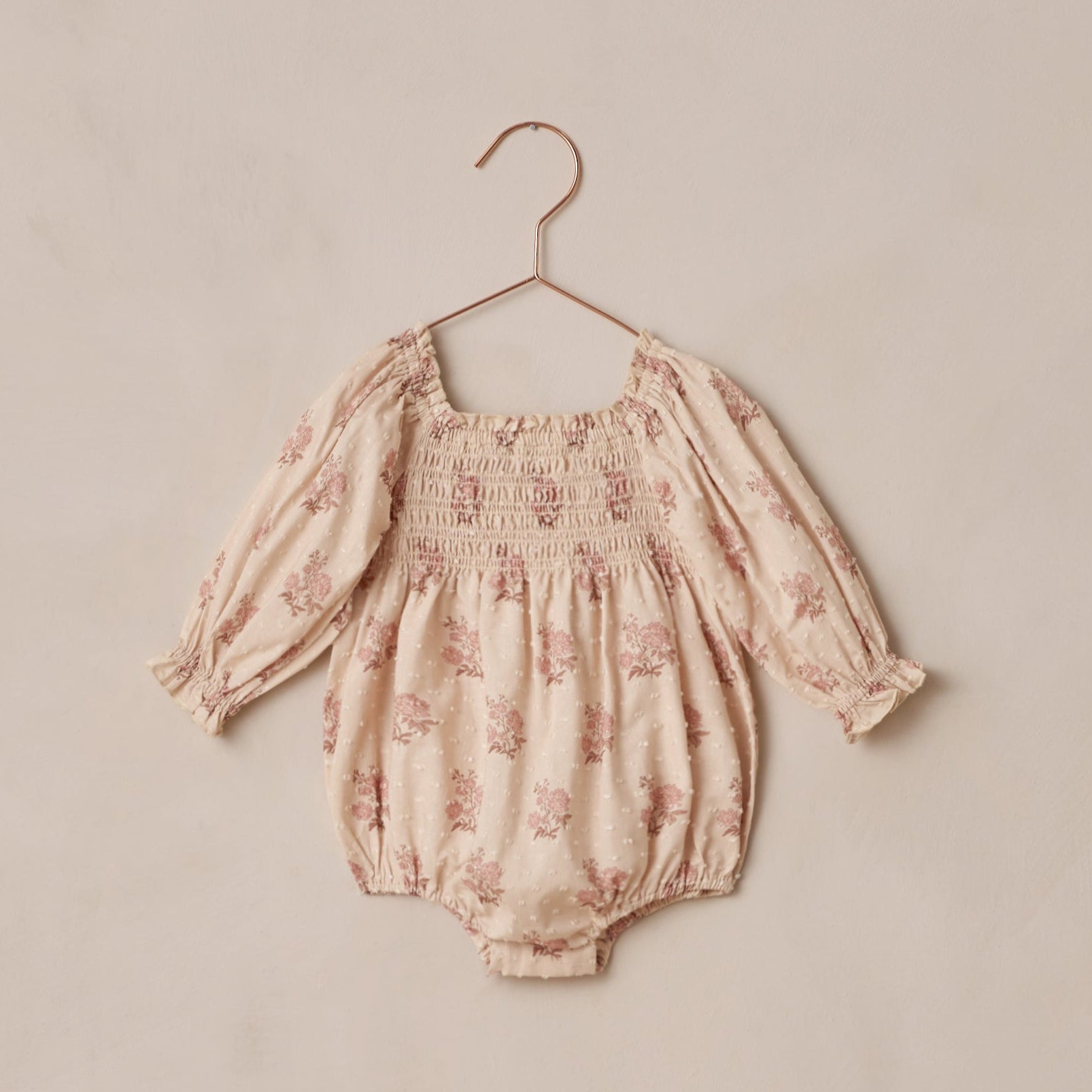 Charming and vintage-inspired, the Autumn Romper features a smocked bodice, billowy long sleeves, and delicate ruffle details for a timeless look.