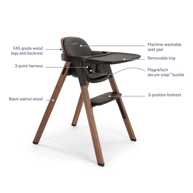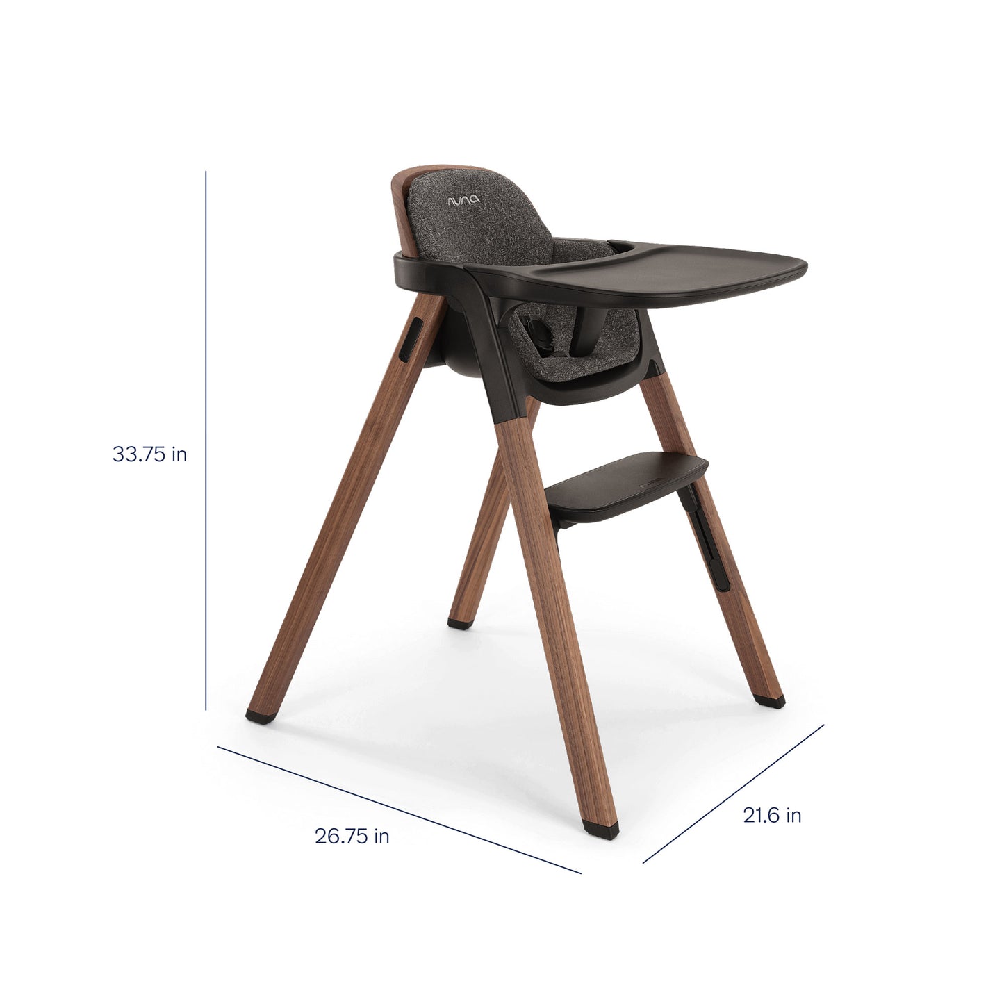 - Each highchair presents an organically unique wood grain and hue, making it a one-of-a-kind statement piece