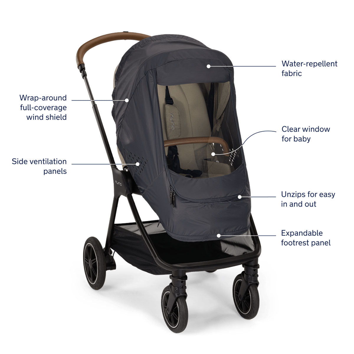 Gear up any Nuna stroller with the Nuna Stroller Wind Cover so your little one can be shielded from the elements!