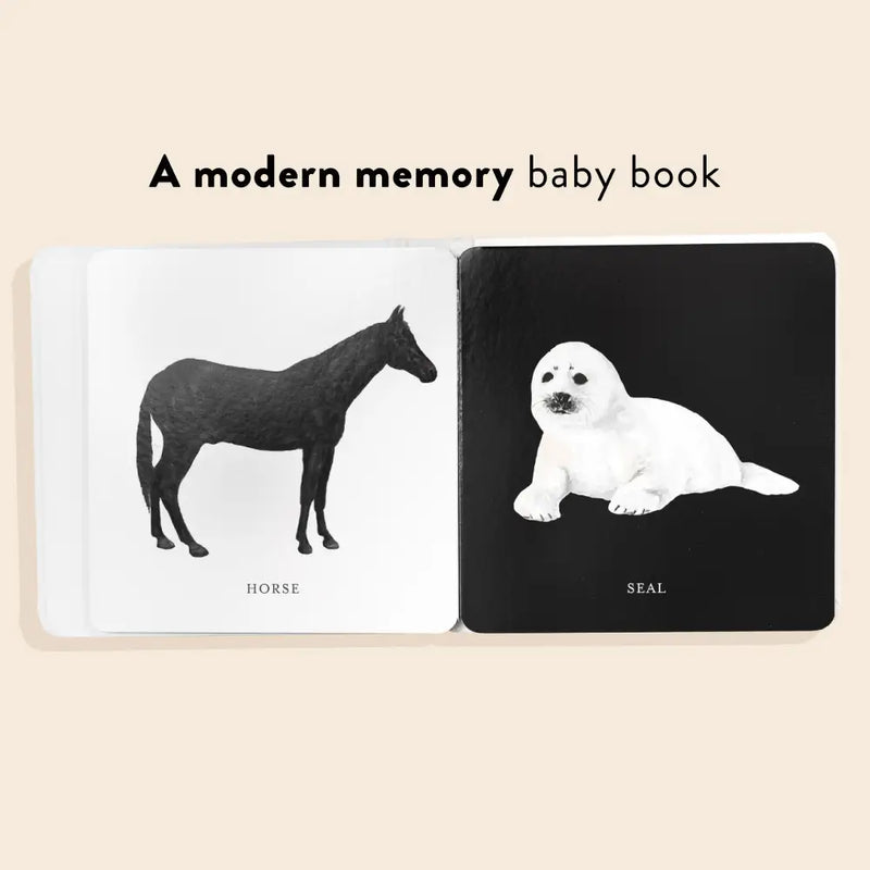 Designed especially for newborns and young infants, this high-contrast black-and-white book helps stimulate early visual development. With bold animal illustrations and an accordion-style format, it’s perfect for tummy time and early exploration.