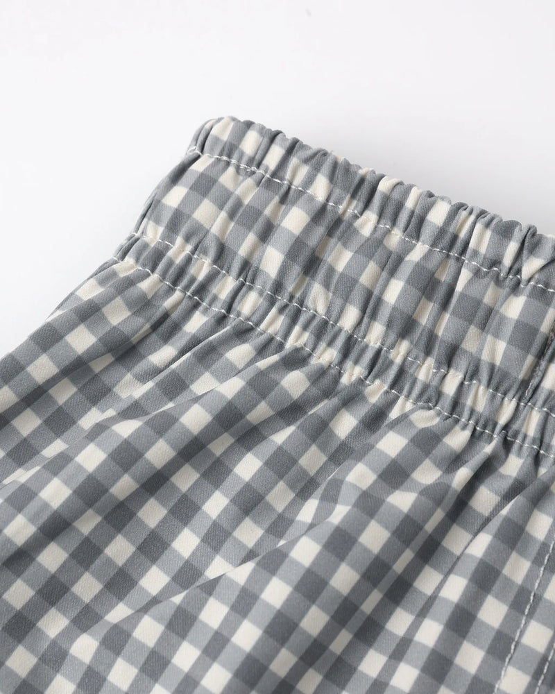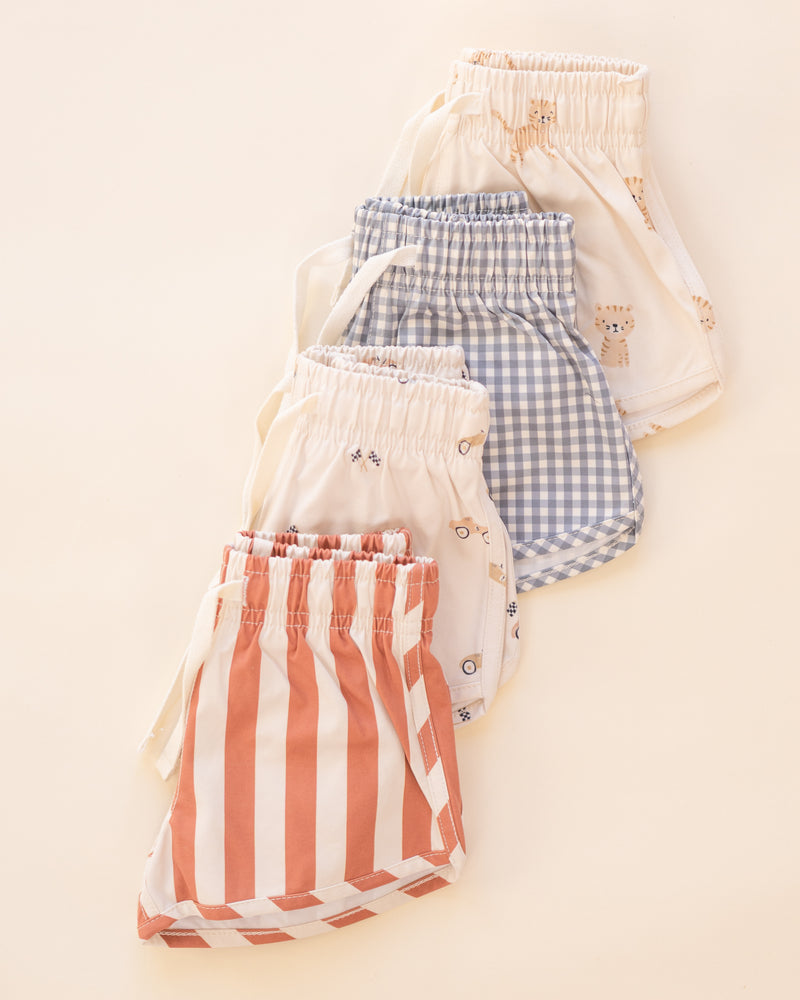 Made for sunny days and splash-filled adventures, these swim shorts bring classic style to the water. The cool ocean gingham print adds a timeless look that’s perfect for beach days, pool time, and everything in between.