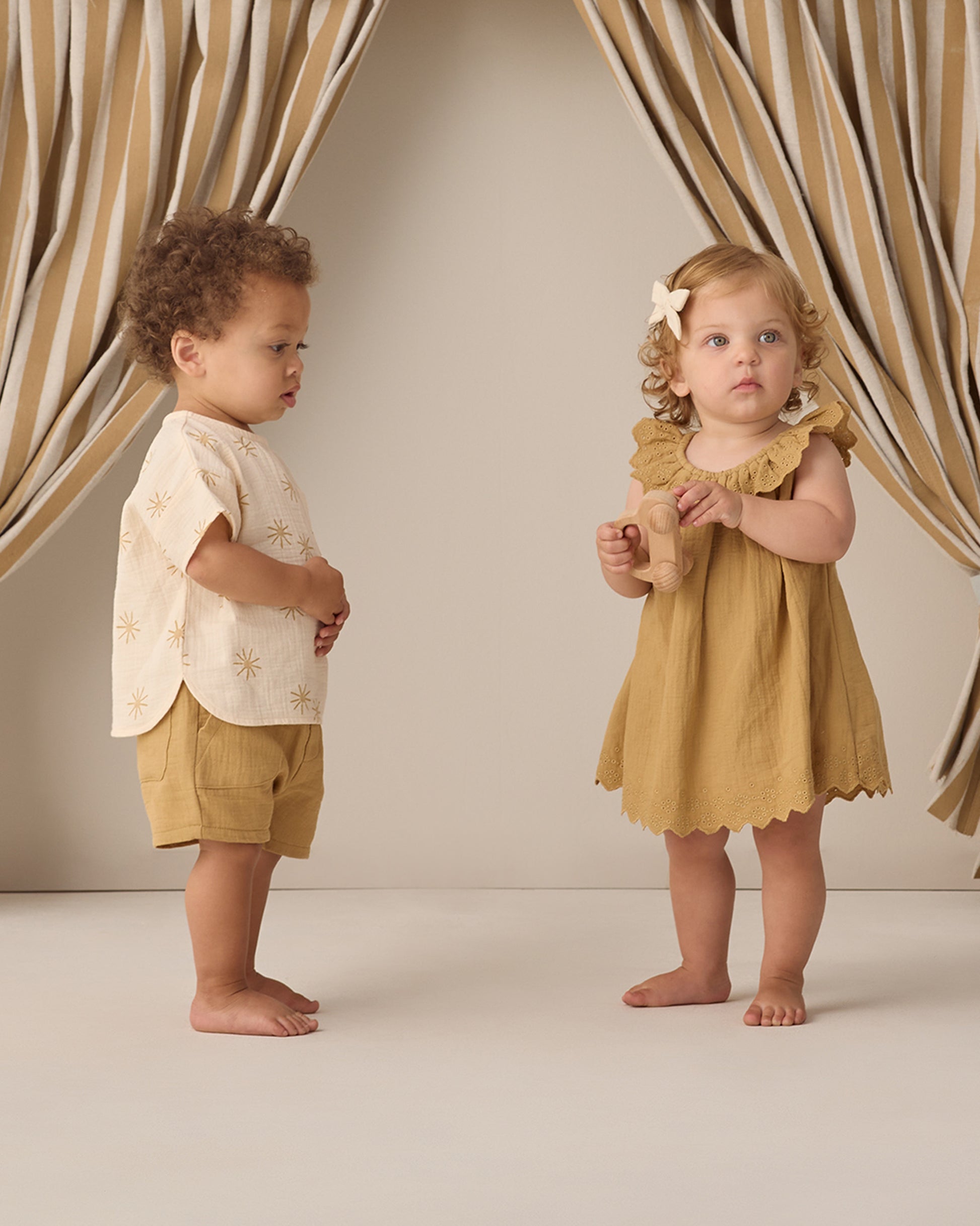 Sweet and timeless, the Isla Dress is made for sunny days and special little moments. With delicate embroidered details and a warm honey hue, this charming dress brings a classic touch to your little one’s wardrobe.