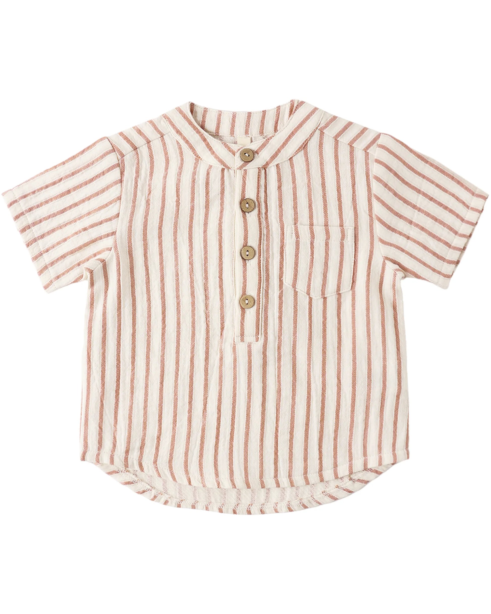 Classic and easygoing, the Jaxson Shirt is a timeless warm-weather staple for your little one. The lightweight feel and vintage stripe pattern make it perfect for sunny days, special outings, or everyday play.