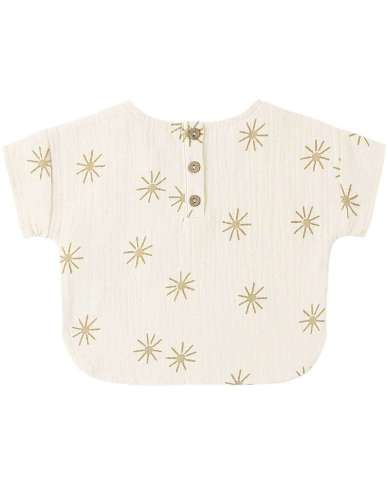 Lightweight and easy to wear, the Woven Boxy Top is a go-to for warm, sunny days. The relaxed fit and cheerful sunburst print make it a fun and effortless addition to your little one’s summer wardrobe.