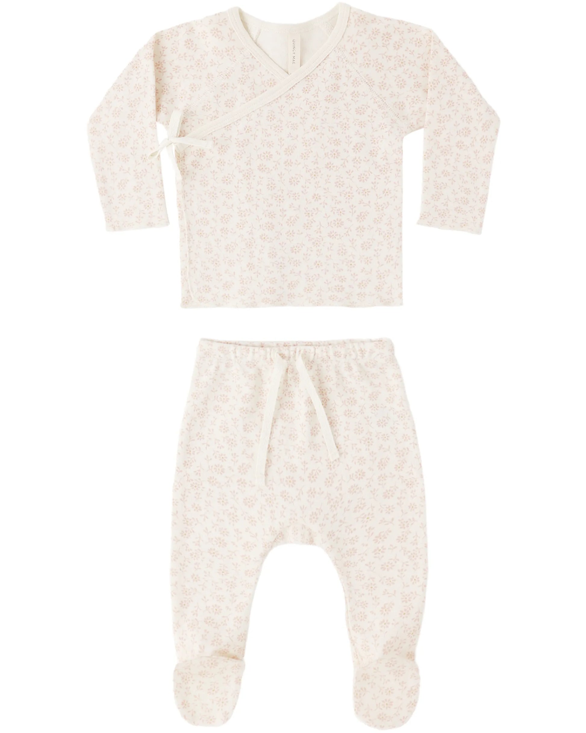 Quincy Mae Wrap Top + Footed Pant Set - Ditsy