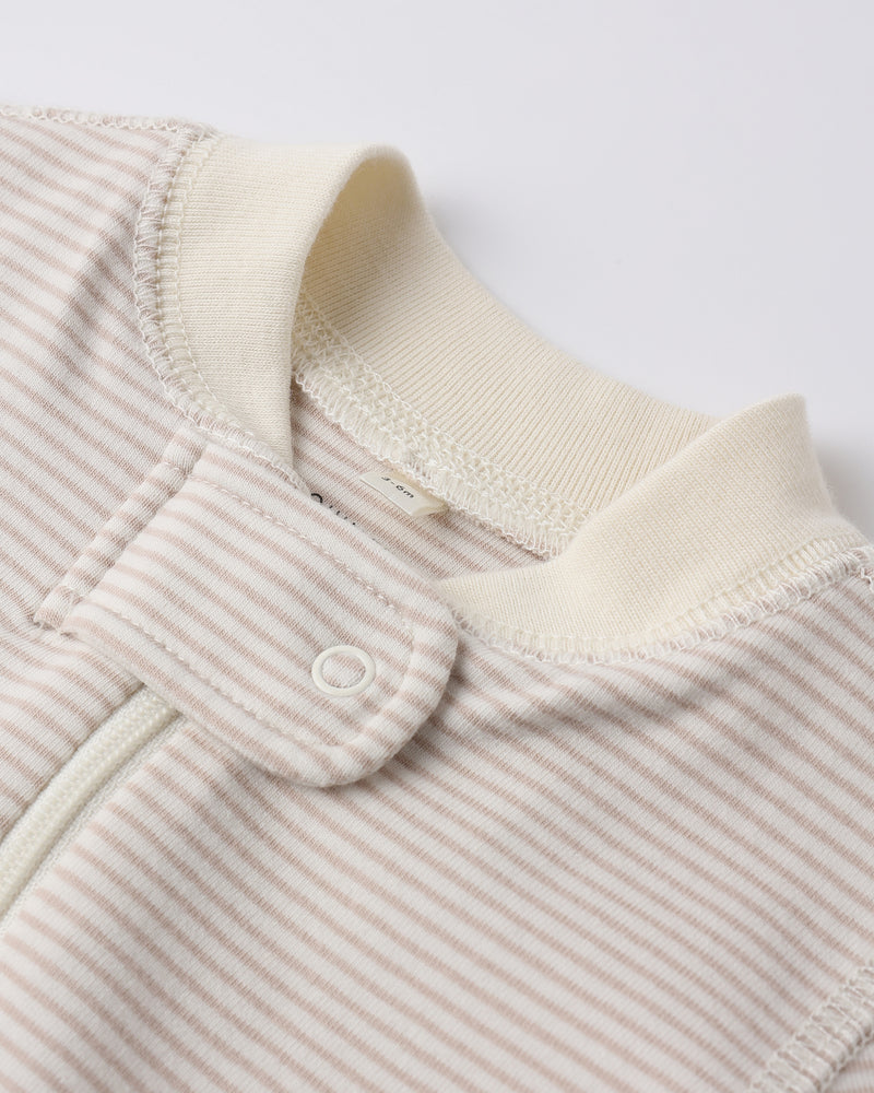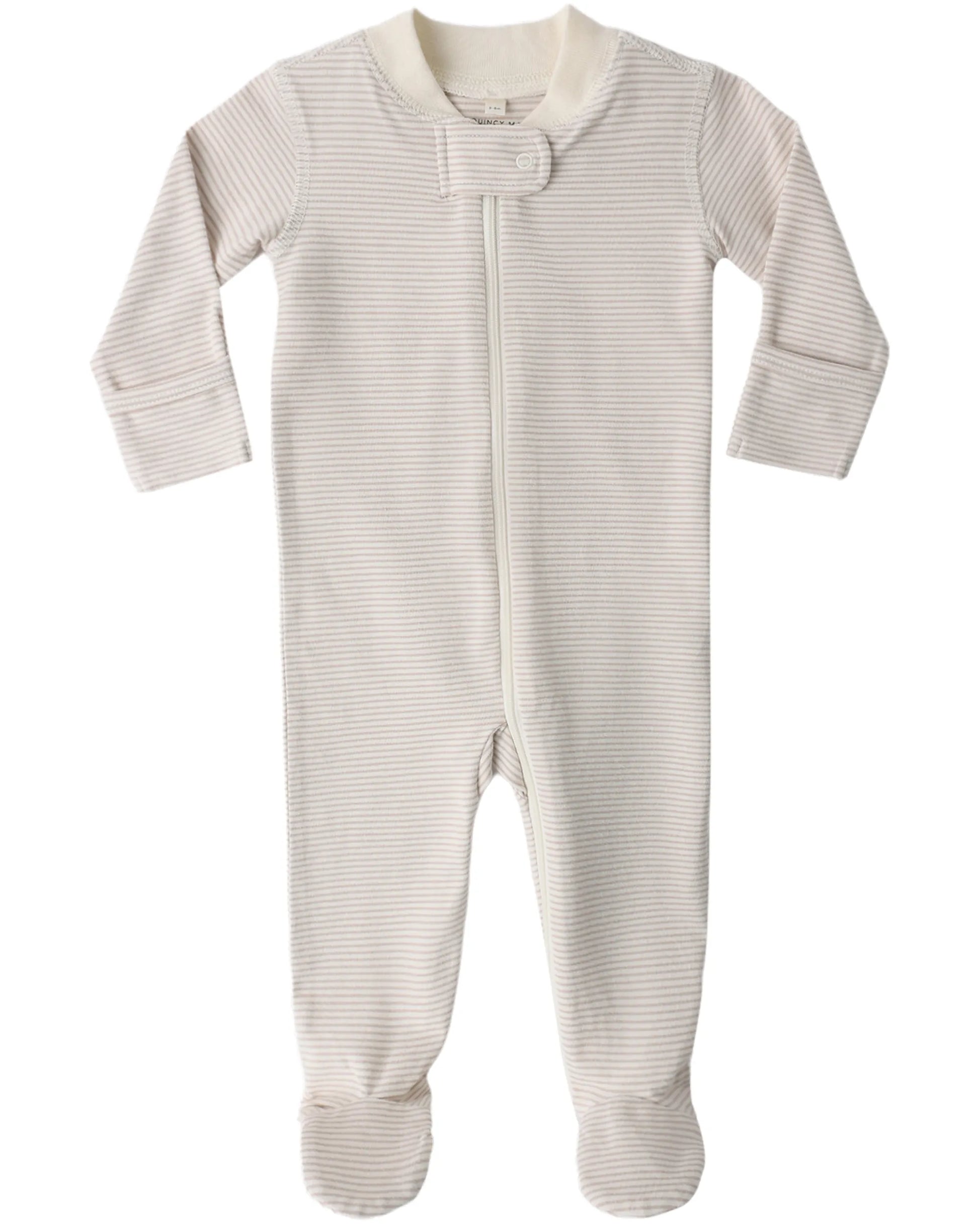 Quincy Mae Zip Longsleeve Sleeper Footie - Oat Microstripe