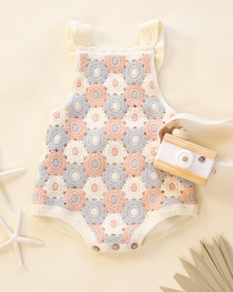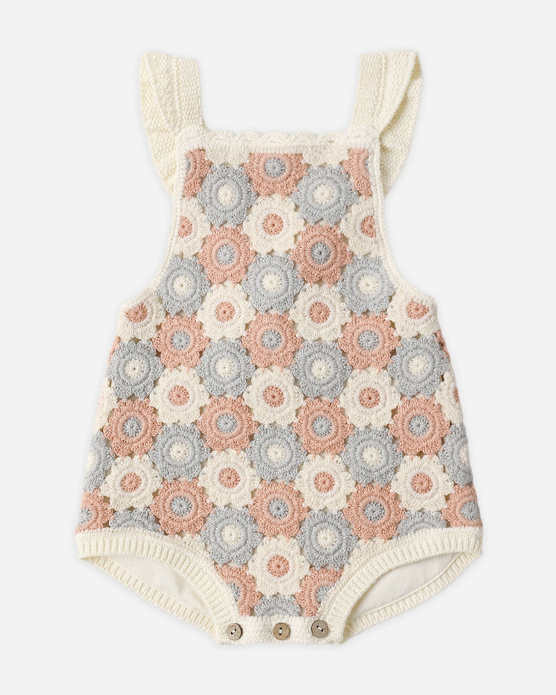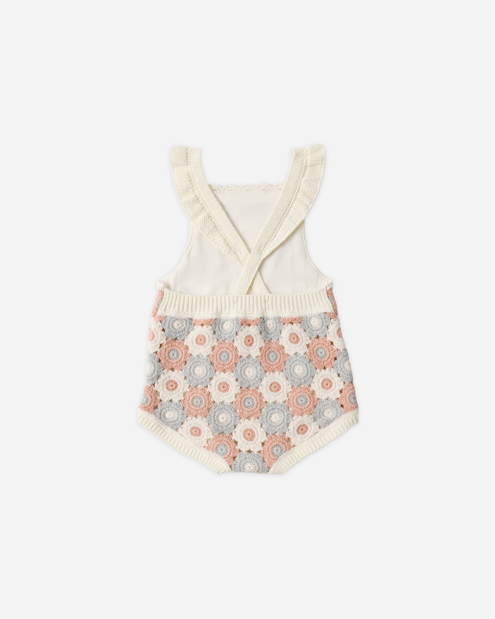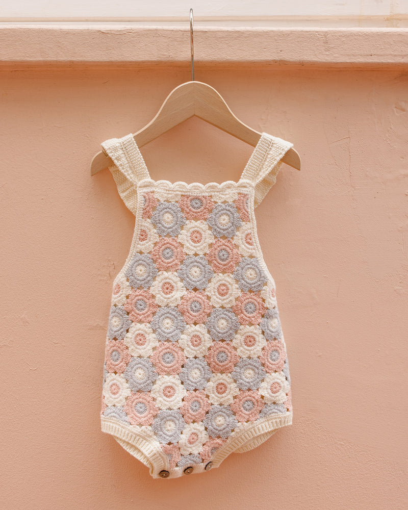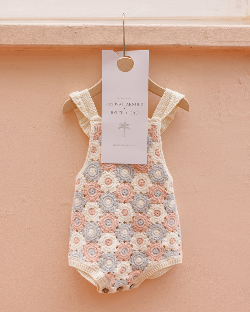 Rylee and Cru Crochet Romper - Blue / Light Pink / Ivory