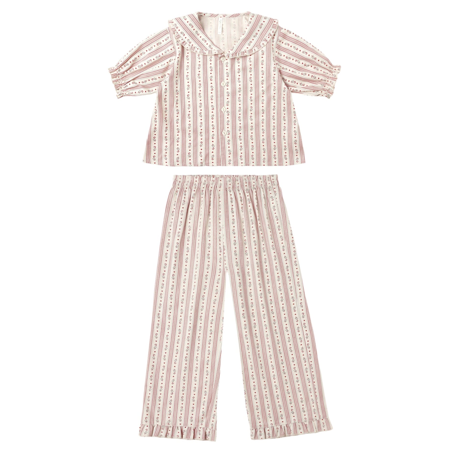 Charming and cozy, this woven pajama set features a ruffle-collar top paired with wide-leg pants and an elastic waistband for an easy, comfortable fit. Adorned with Rylee + Cru’s candy cane stripe print on a natural hue for a festive touch. Care: Machine wash cold. Tumble dry low. Made of 60% Acrylic, 40% Cotton.