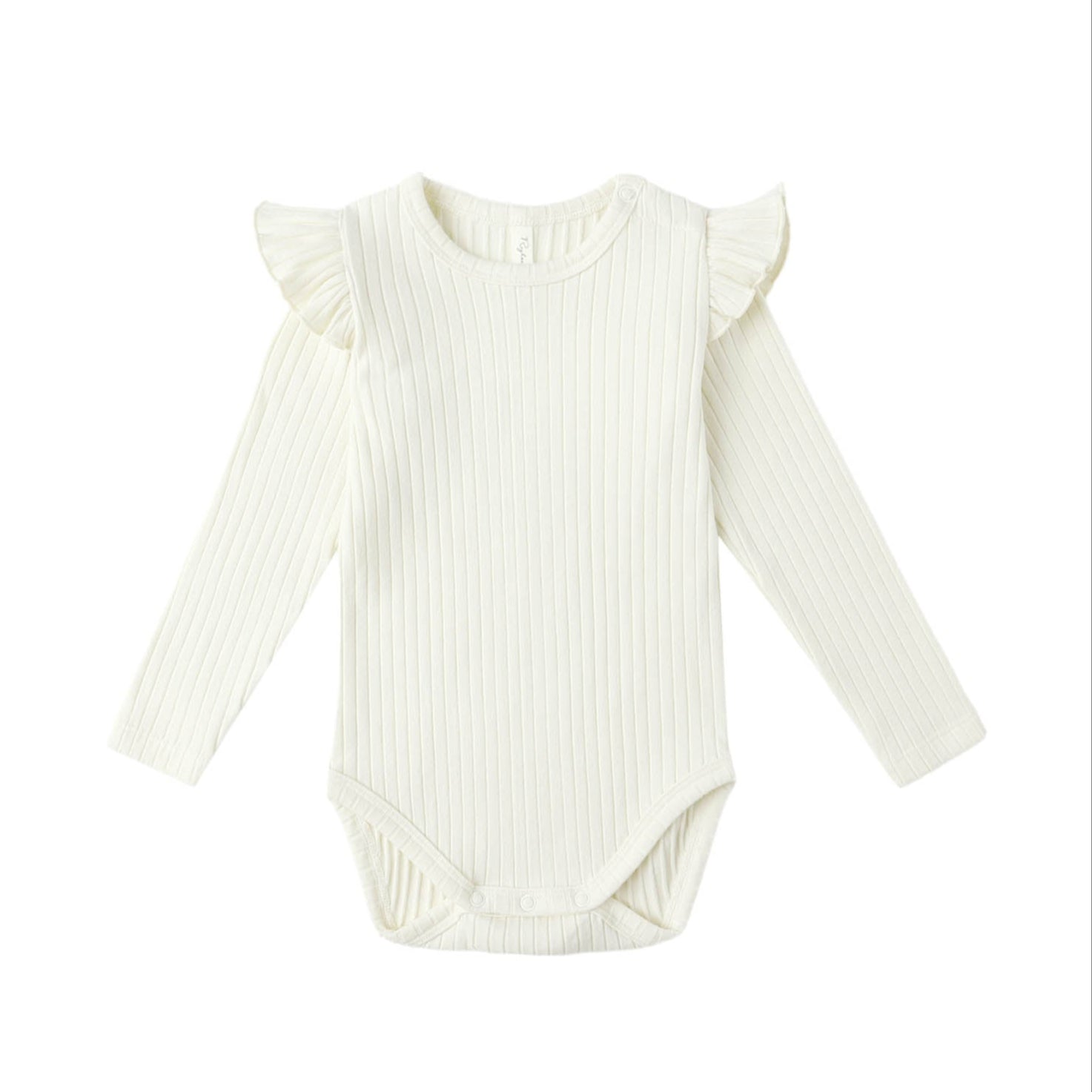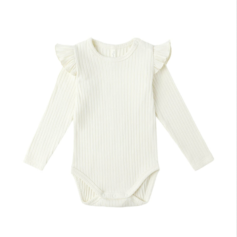 Sweet and practical, this long sleeve bodysuit features darling shoulder ruffles and convenient snaps at the neck and bottom for easy changing. Pair it with leggings for an effortlessly cute outfit.