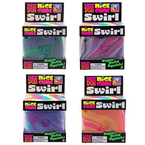 The NeeDoh Nice Cube Swirl is full of bright, twisty colors and endless squish!