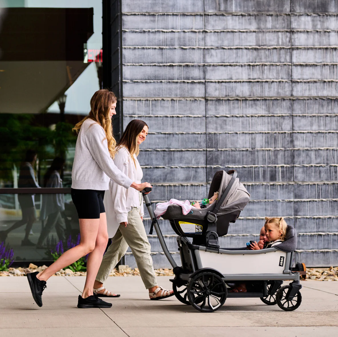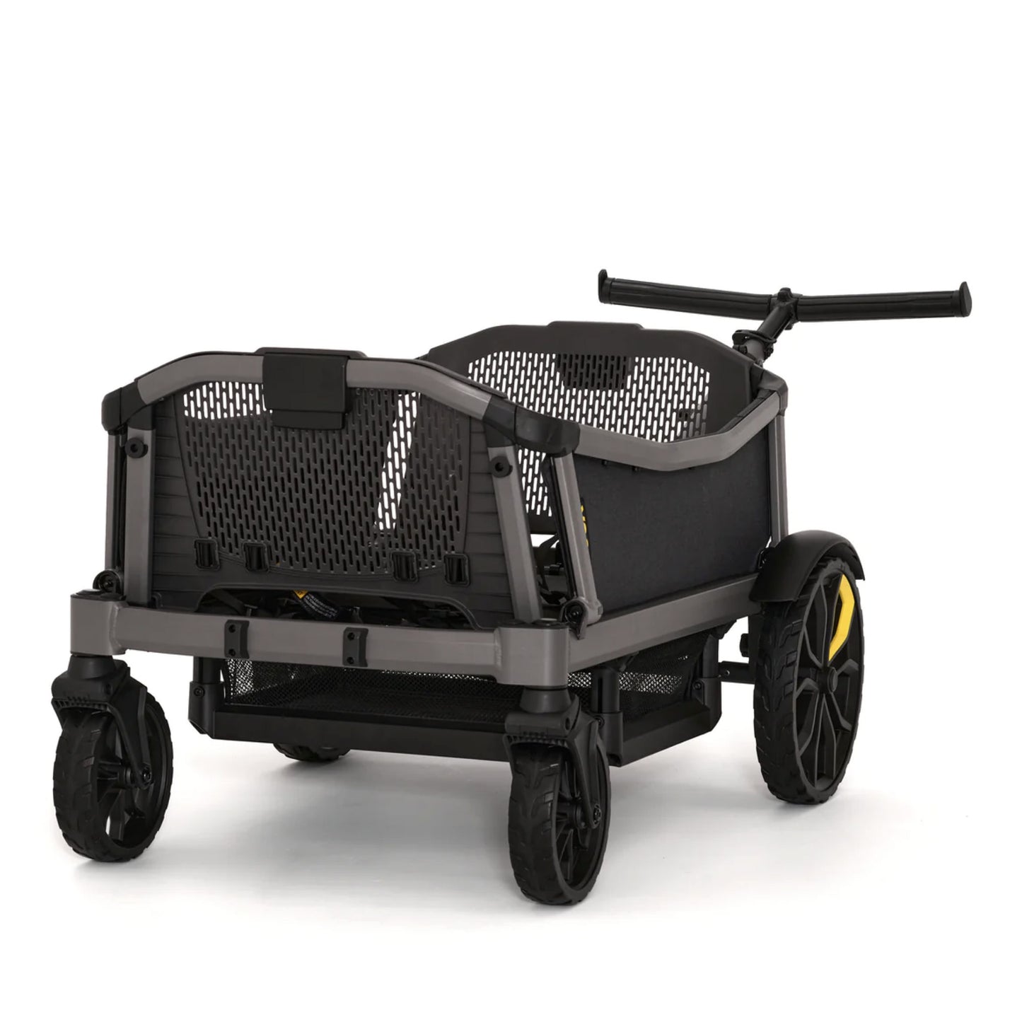 Cruiser City XL gives your family the fun and all-terrain versatility of a Cruiser but offers push steering of a traditional stroller. Cruiser City XL is perfect for families that love to push on sidewalks, paths and through local attractions with seating for 4. Cruiser City XL features swivel wheels furthest from the handle, which enable it to be steered like a traditional stroller when pushing on smooth terrain. The handlebar can also drop into wagon mode for pulling over uneven terrain.