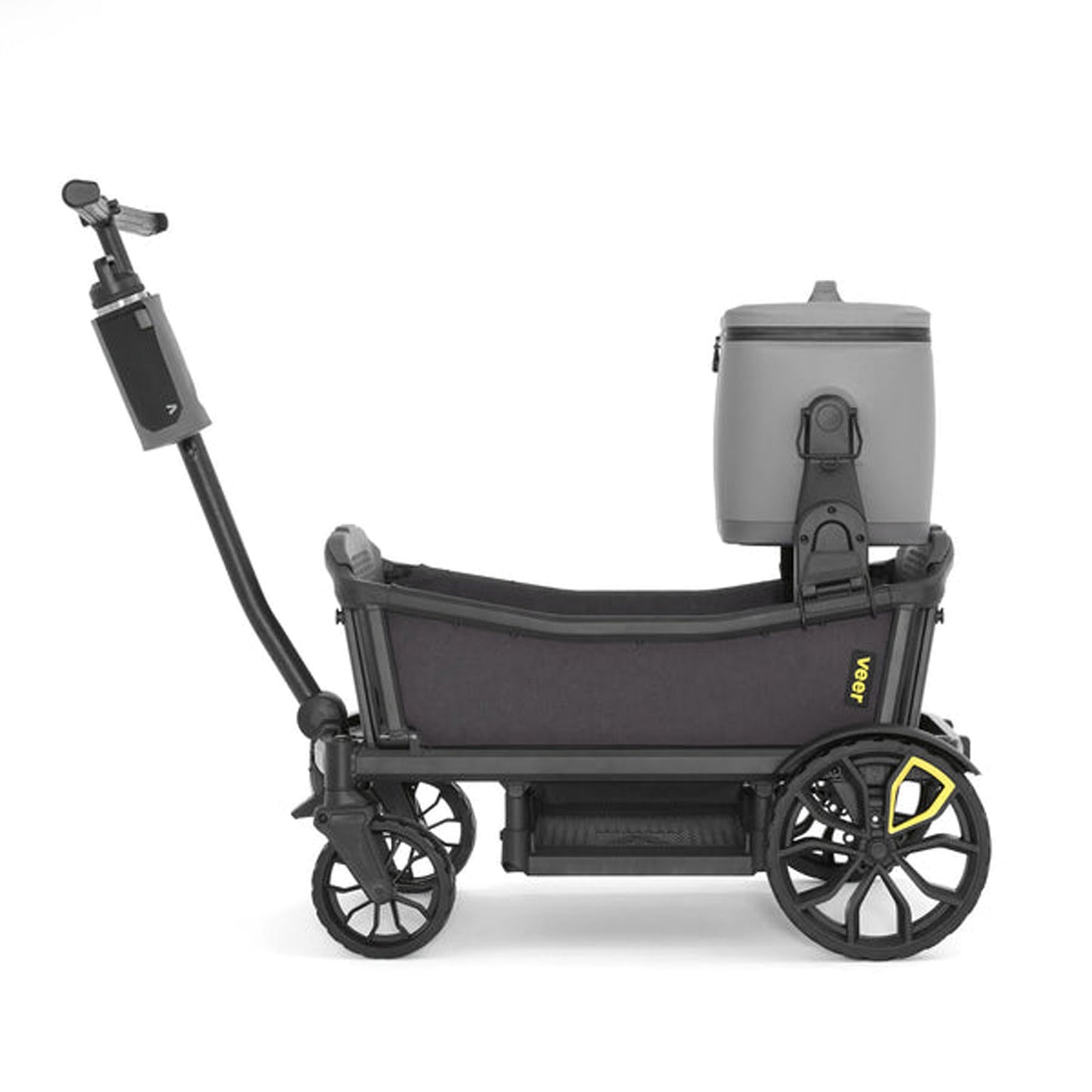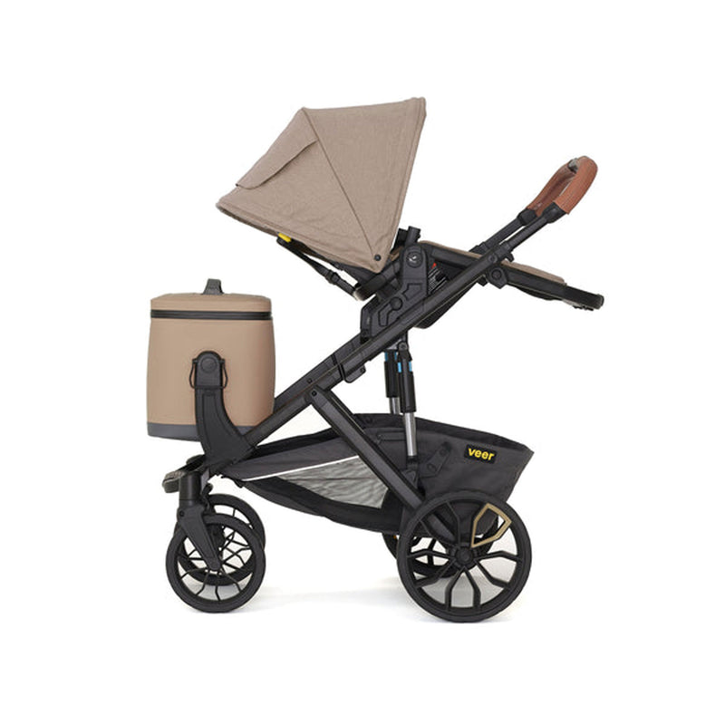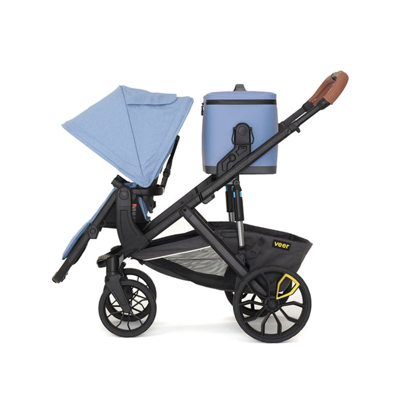 Triple the size of Veer's Lunch Cooler, this 18 liter soft cooler is large enough to pack multiple meals, snacks, and drinks for the entire family, yet lightweight and easy to carry by its handle or padded shoulder strap. Veer’s patented quick release Switchback hubs allow you to quickly snap onto &Roll, &Jog, &Bike, &Chill or Cruiser and snap off by lifting the shoulder strap or handles. Side handles lock the cooler in place when flipped down, and unlock when flipped up.